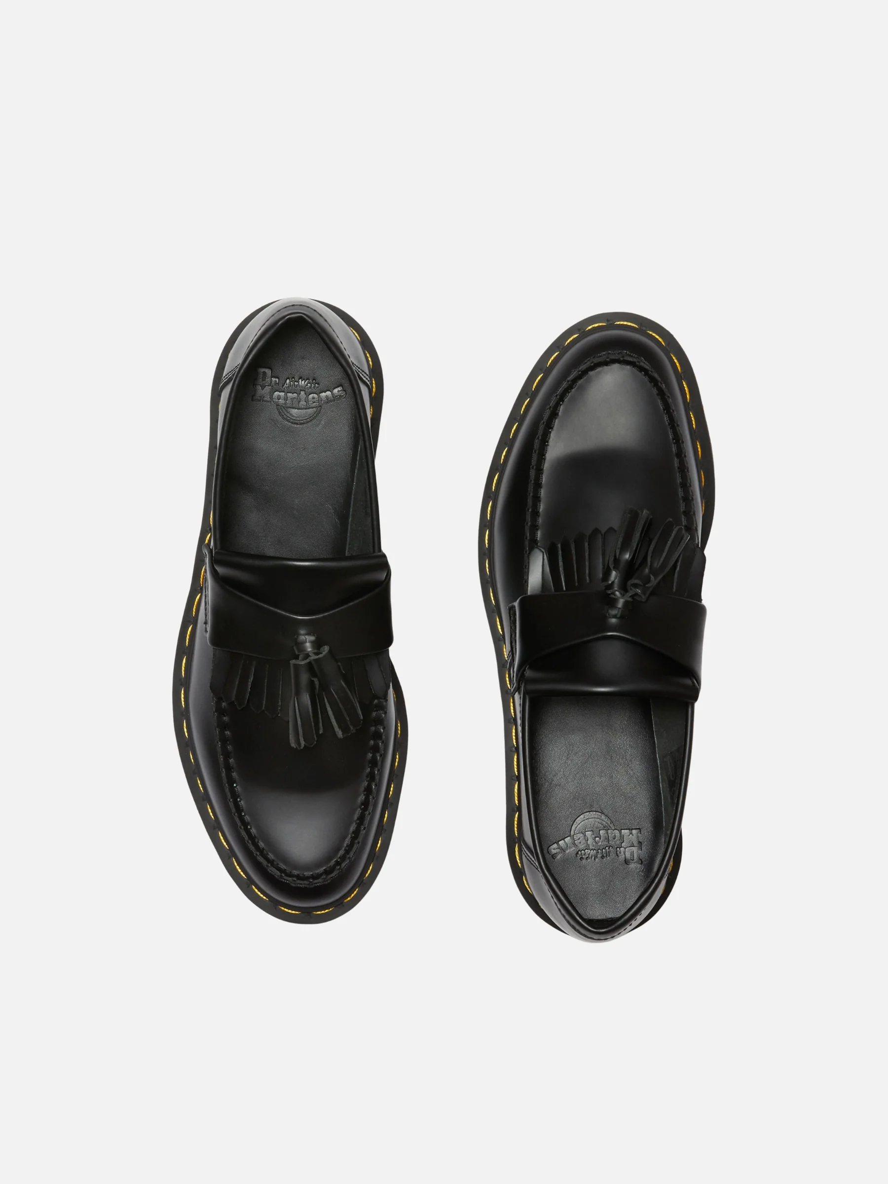 A decades-long favourite, the Dr. Martens Adrian Tassel Loafer features all the signature detailing of the brand, including Goodyear heat-sealed welted construction with yellow stitching and structured smooth leather. Complemented with a grooved two-tone outsole, fringe and tassel detailing completes the style.