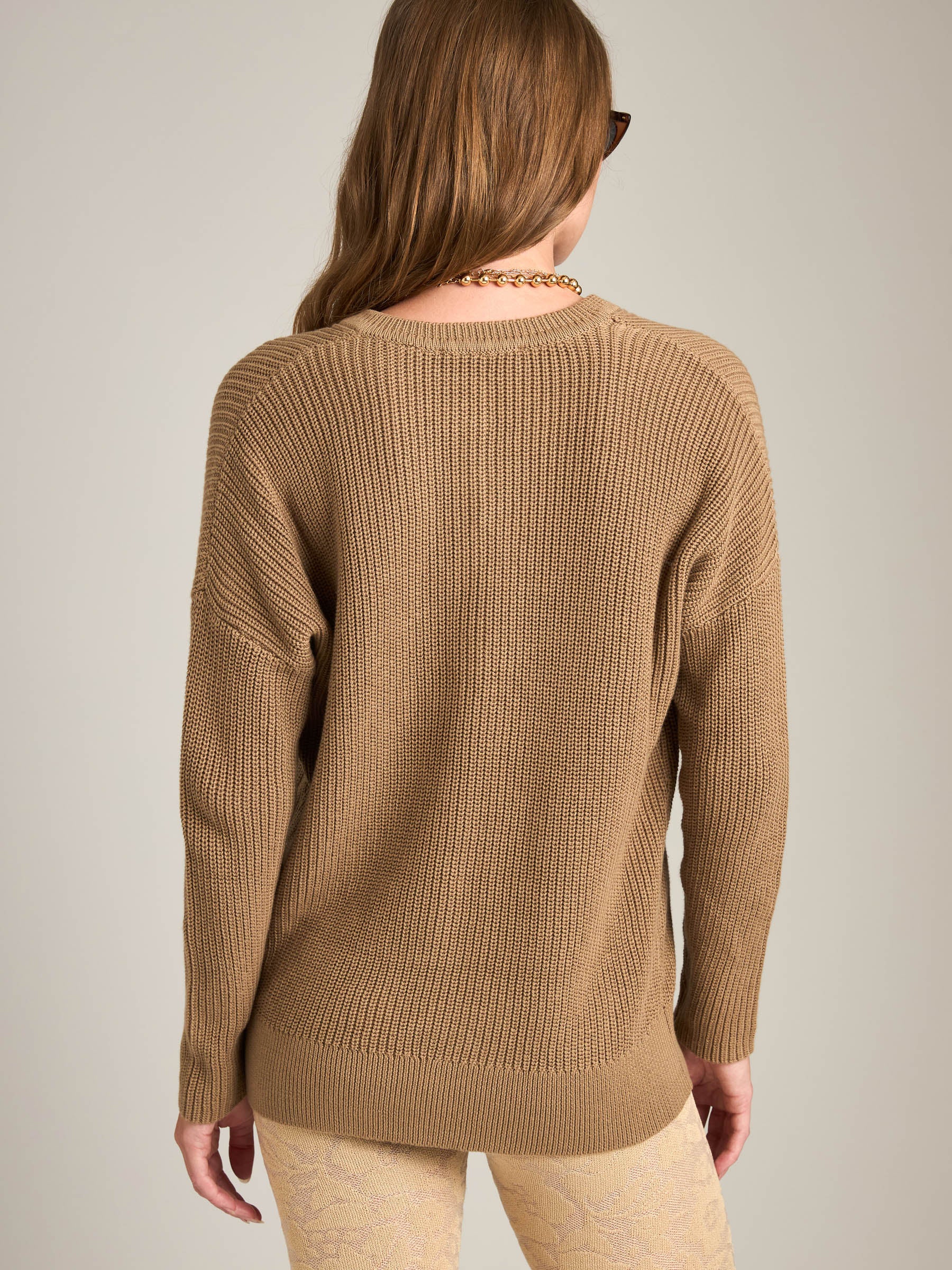 Designed with a relaxed silhouette for a casual look, the Monk & Lou Neda Henley Sweater is constructed with a cardigan-stitch knit for a textured appearance. Adorned with four buttons on the placket for versatile styling, dropped shoulders and rib trim details complete the look.