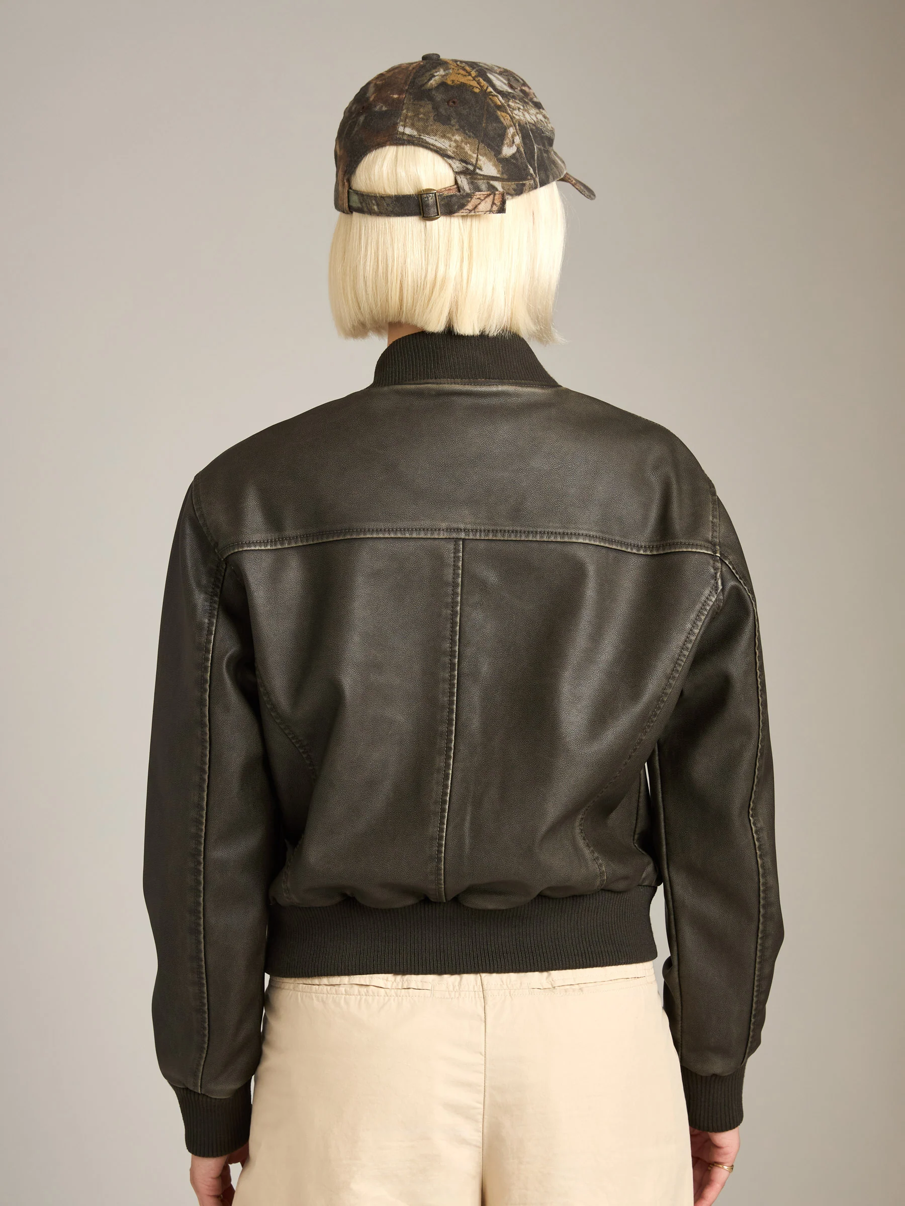 - Faux leather bomber jacket